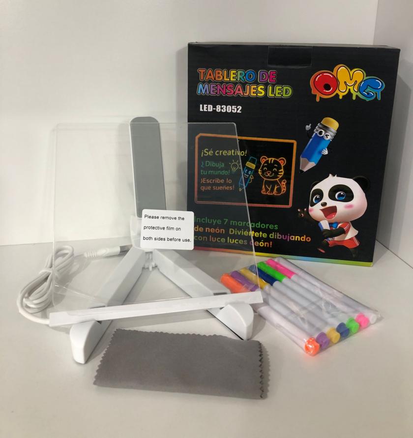 TABLERO / PIZARRA LED - INCLUYE 7 MARCADORES DE NEON Y PAÑO PARA BORRAR Y LIMPIAR - TRIPODE SOPORTE - ALIEMNTACION POR USB