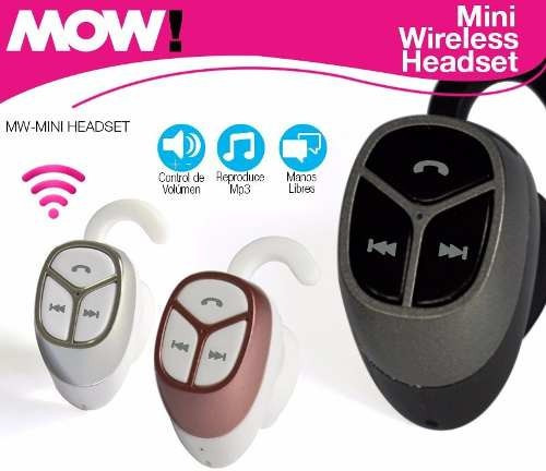 MINI AURICULAR INALAMBRICO MOW! - MICROFONO INCORPORADO - SONIDO STEREO - 2 CANALES - DURACION EN MODO STAND BY: 7 DIAS - DURACION EN MODO LLAMADAS: 3HS - FUNCION DE TELEFONO Y MUSICA - INCLUYE CABLE DE CARGA MICRO USB