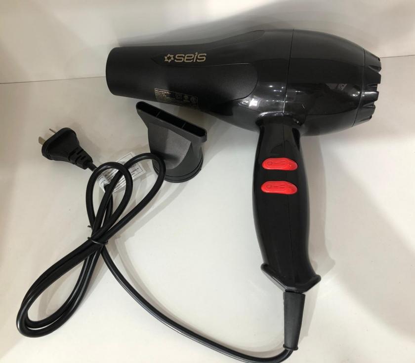 SECADOR DE PELO SEIS MODELO SP32 - TECNOLOGIA AIR IONIZER PARA REDUCIR EL FRIZZ - MOTOR CON SILENCIADOR INCORPORADO - 4 TEMPERATURAS, 2 VELOCIDADES - BOTON DE AIRE FRIO - 3,3MTS DE CABLE - BOQUILLA CONCENTRADORA DE AIRE